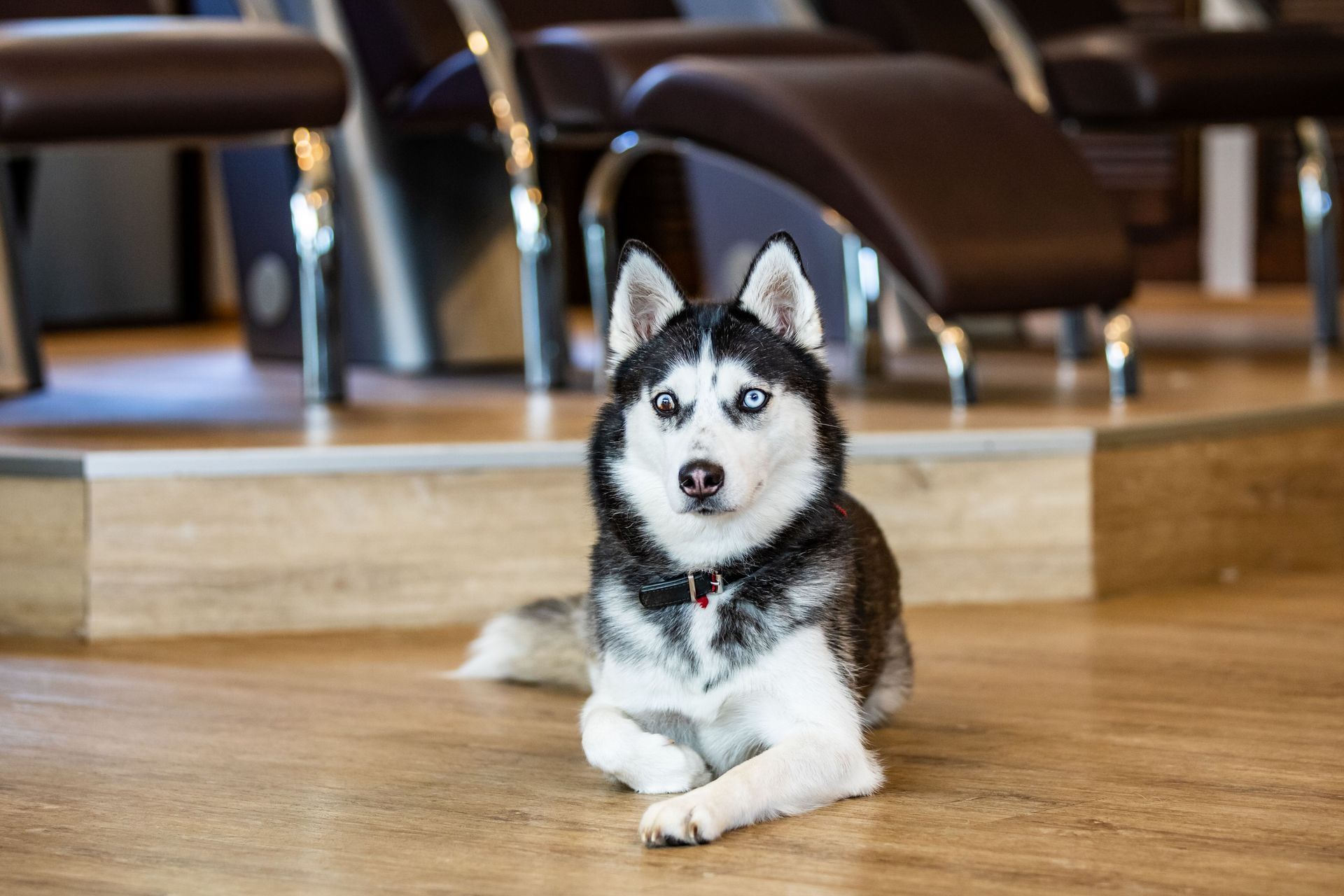 Unsere absolut liebe Husky Dame Bella verschönert unseren Salon und unseren Kunden ein Lächeln ins Gesicht durch ihre süße Fellschnauze.